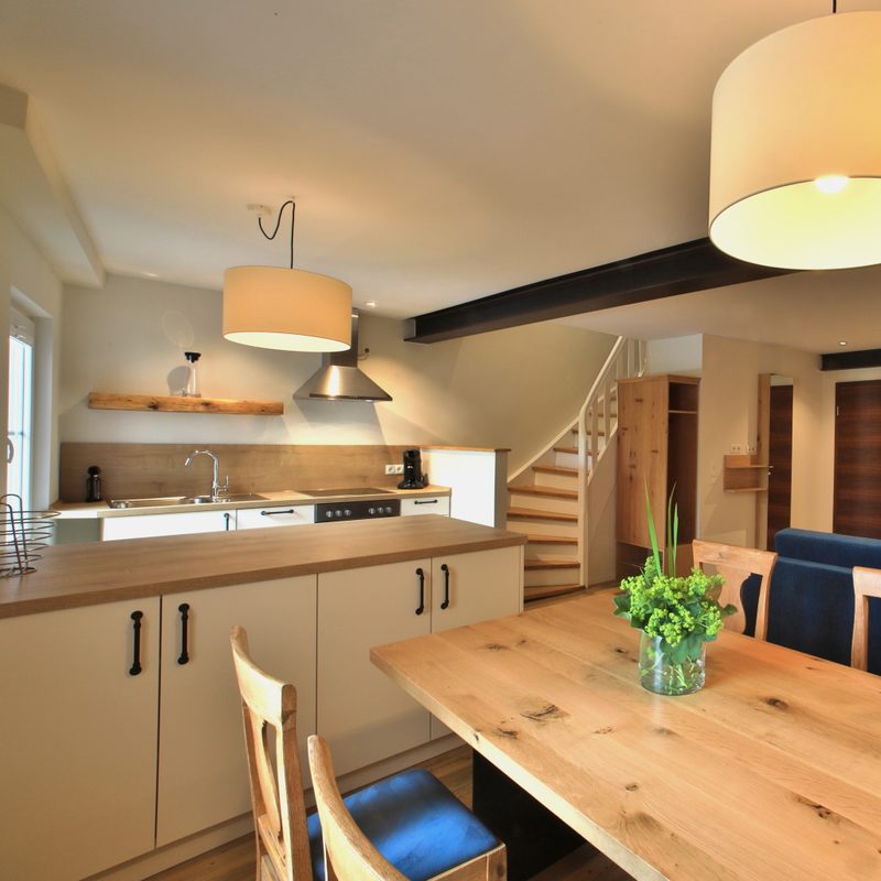 The comfort apartment has a living space of approx. 65m² over 2 floors. It has 4 beds and a fully equipped kitchen including a dishwasher.